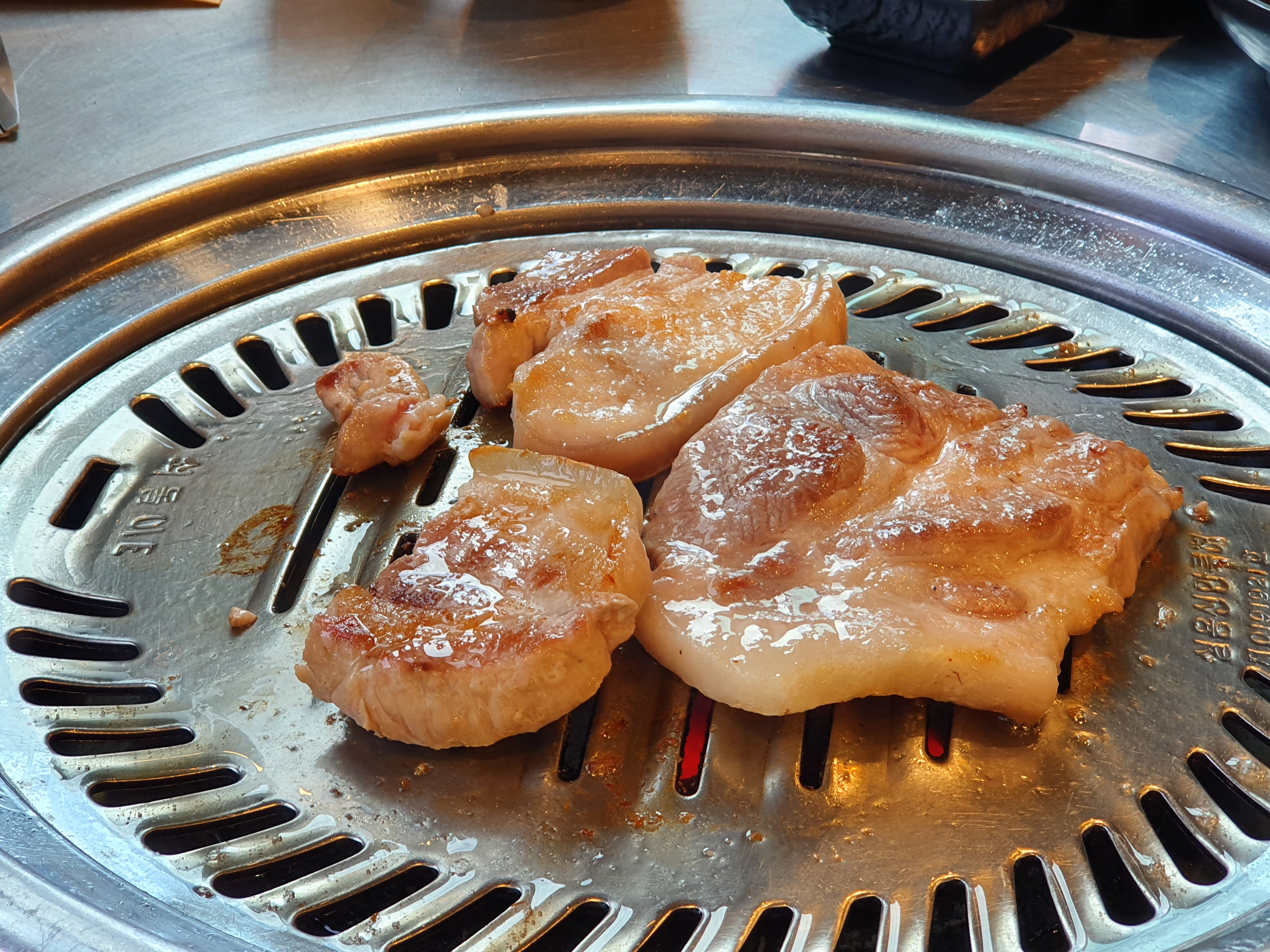 가끔 삼겹이 목살보다 맛있는 집이 있는데, 이집도 삼겹이 맛나길 기대하면서 구웠다.